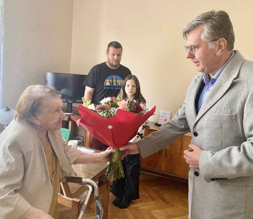 Pani Kazimiera Aurelia Hefczyńska świętuje w tym roku setne urodziny; z tej okazji najlepsze życzenia złożyli szacownej Jubilatce Burmistrz Jacek Socha i Sekretarz Miasta Magdalena Błaszczyk.