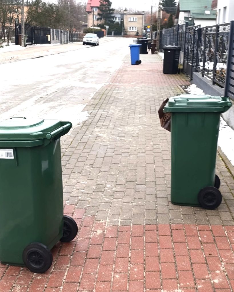 „Mam pytanie do ekipy z OPK, która zabierała śmieci na ul Brzoskwiniowej. Te kosze porozstawiane po całym chodniku, to tor przeszkód czy slalom gigant?!”- pyta internauta.