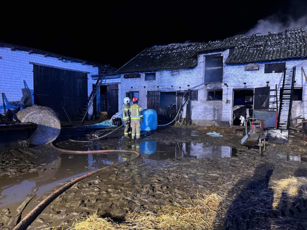 – Gdy na miejsce przybyli strażacy, pożarem całkowicie objęty był dach budynku, a wewnątrz znajdowały się zwierzęta hodowlane (byki i jałówki), które zostały ewakuowane w pierwszej fazie działań gaśniczych. W pożarze nikt nie został poszkodowany. Nie ucierpiały też zwierzęta – informuje bryg. Radosław Ogrodowczyk, oficer prasowy KP PSP w Poddębicach.