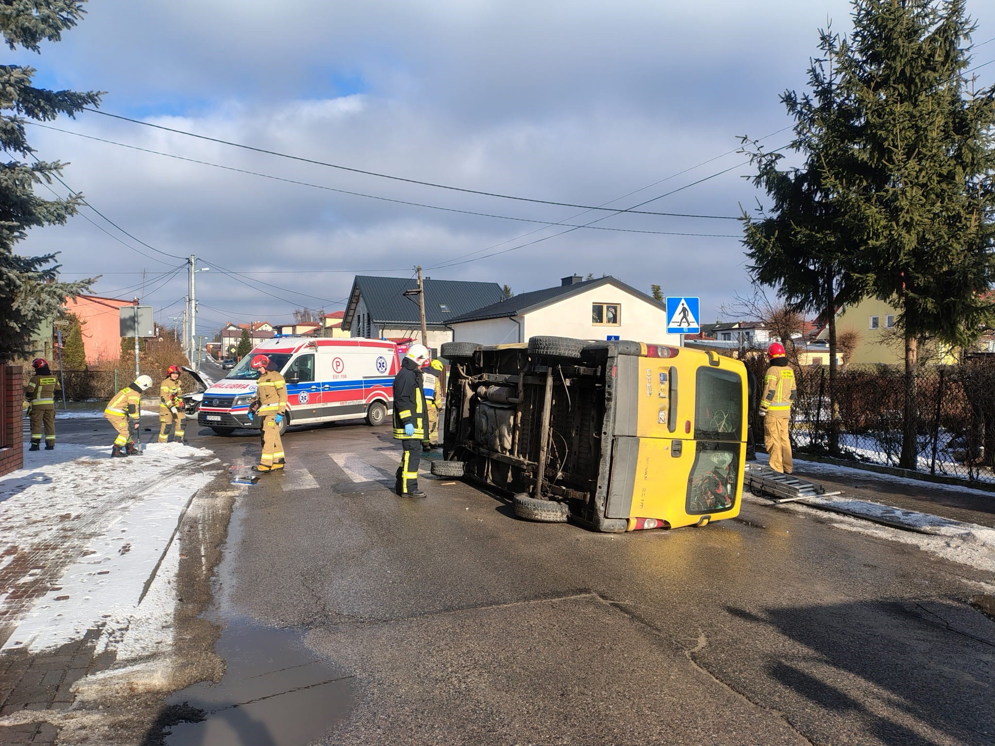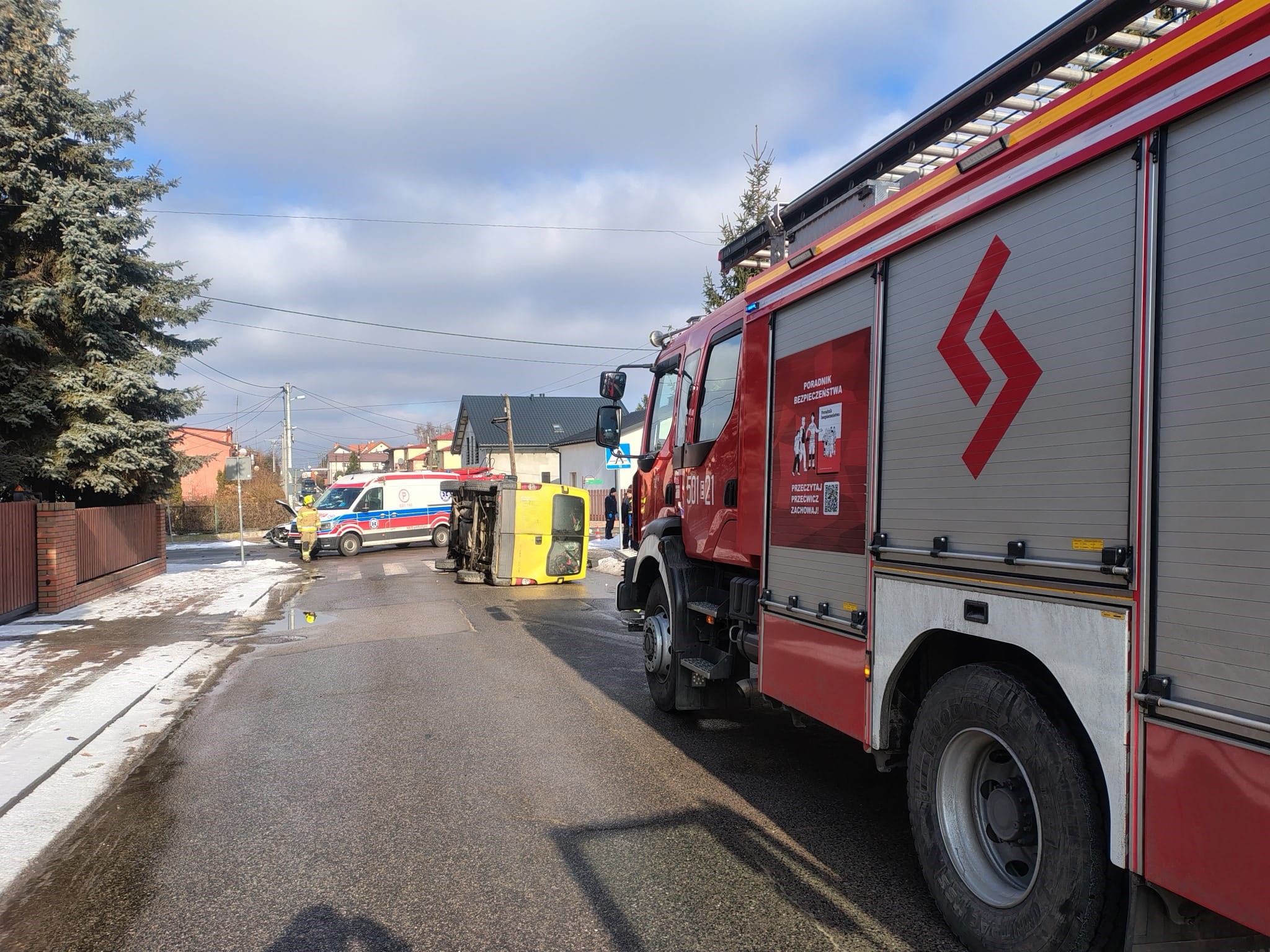 Duże bum na skrzyżowaniu w Poddębicach! Bus przewrócił się na bok!