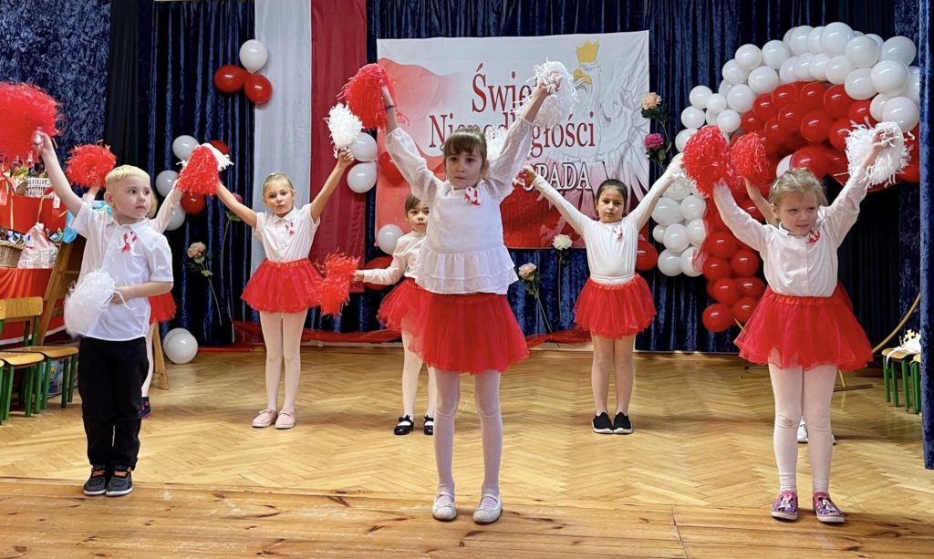 Podczas uroczystości przedszkolaki zatańczyły także Poloneza, a na zakończenie wszyscy odśpiewali Hymn Polski.