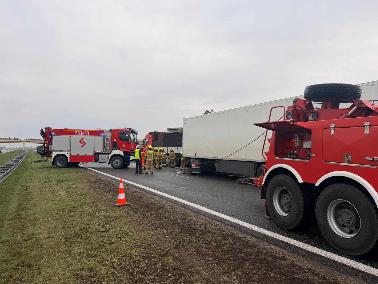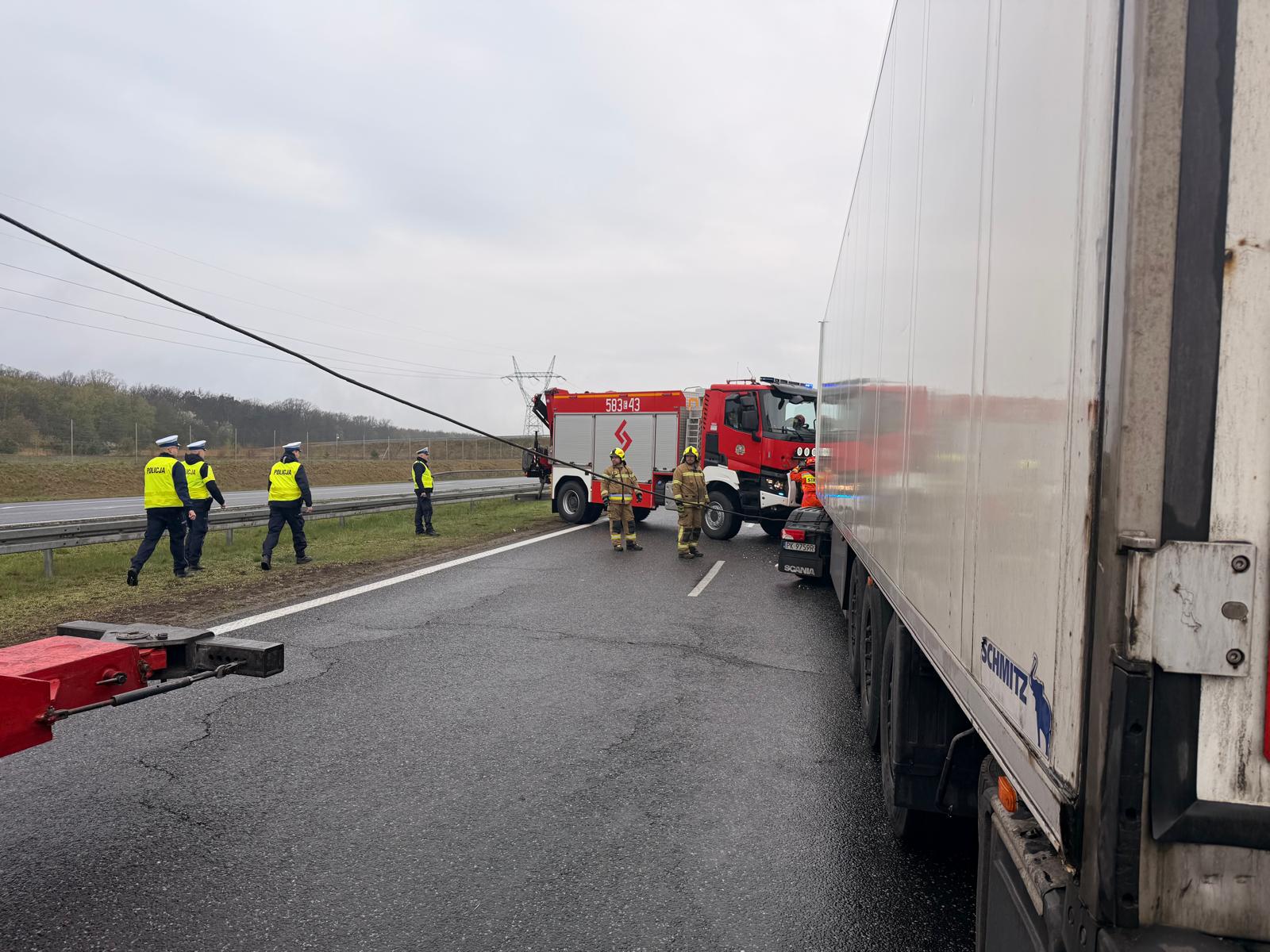 3 osoby zostały ranne – kierowca drugiego tira i serwisant mobilnej wulkanizacji oraz 1 osoba z naprawianej ciężarówki.