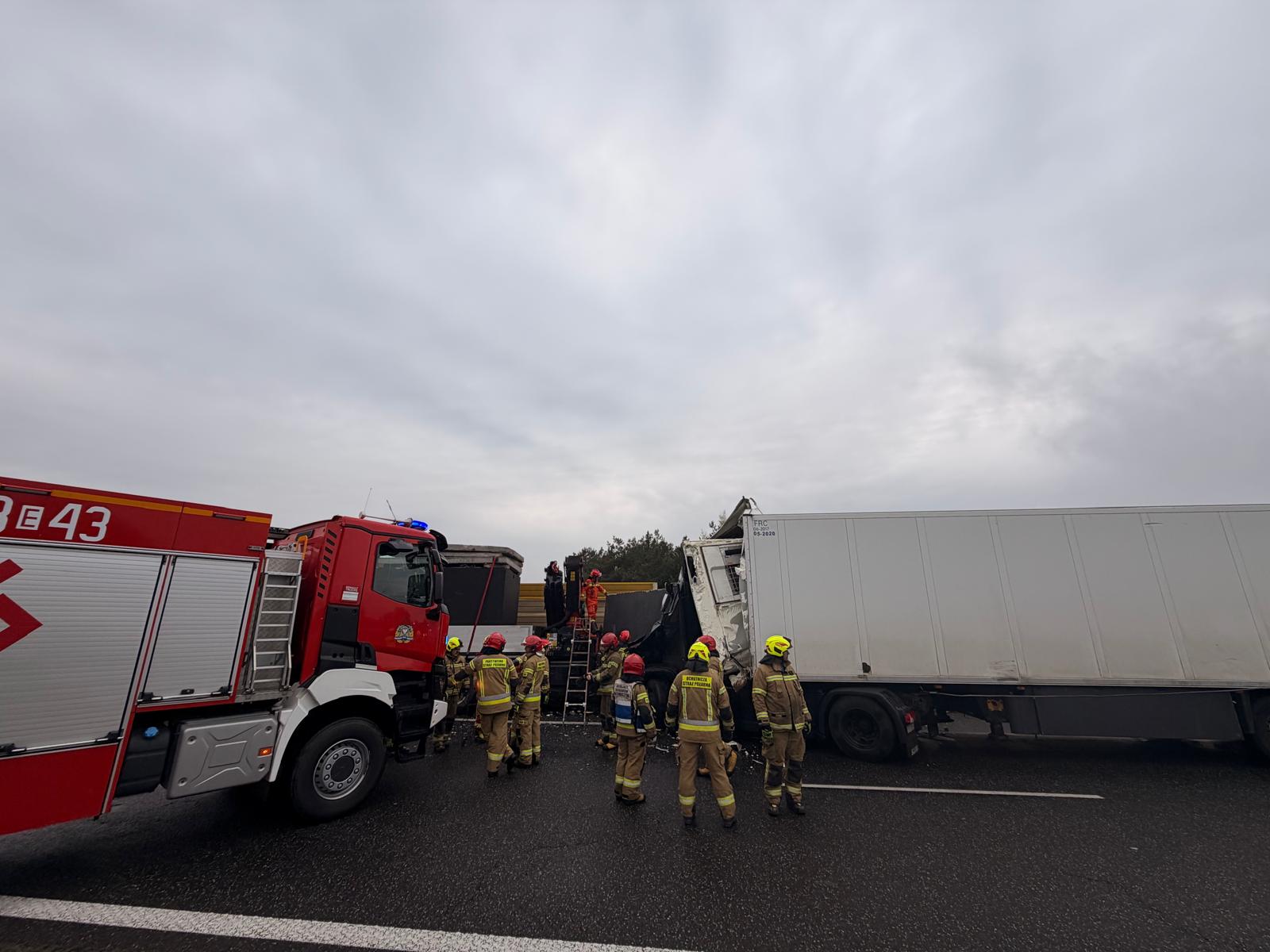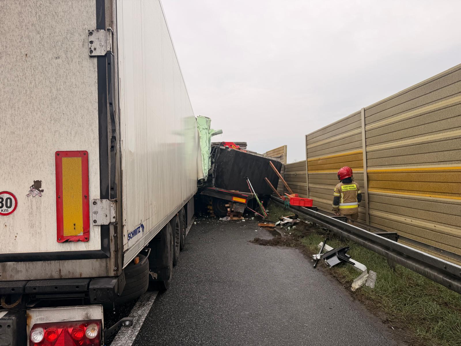 W stojącą na poboczu ciężarówkę, w której trwała wymiana koła, wjechał tir. Mężczyzna wymieniający koło został zmiażdżony. Potężny pojazd przygniótł go do autostradowych barier.