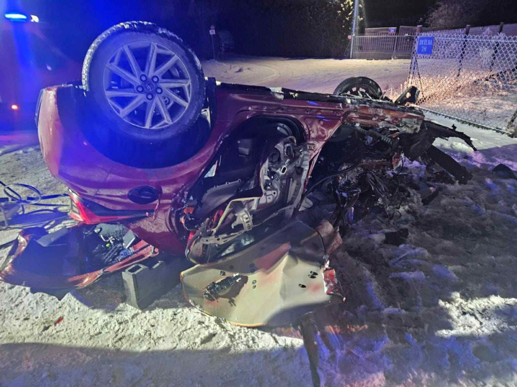 Strażacy musieli rozcinać blachę toyoty, aby wyciągnąć z roztrzaskanego samochodu kierowcę.