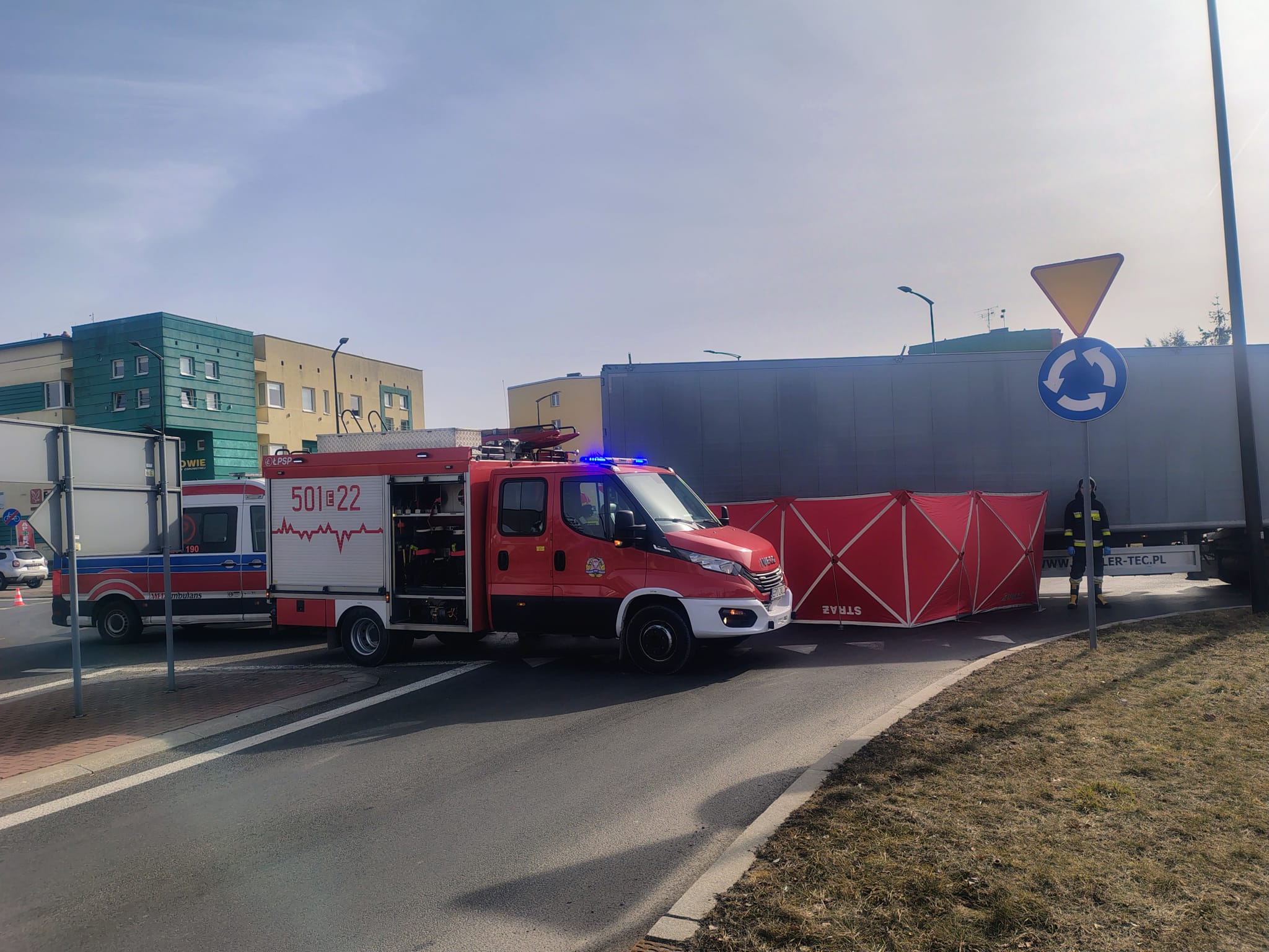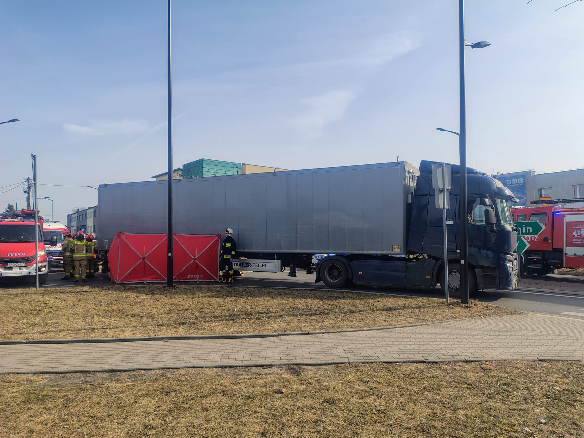 Strażacy wydobyli ciało mężczyzny spod potężnej naczepy tira na rondzie drogi krajowej nr 72 w Poddębicach. 63-latek zginął na miejscu. Akcja służb w tym miejscu trwała prawie 2 godziny. Policja wyjaśnia okoliczności tego śmiertelnego wypadku. Wiadomo, że mężczyzna zginął w obrębie przejścia dla pieszych.