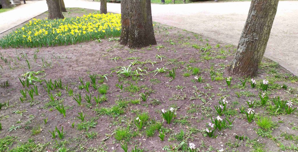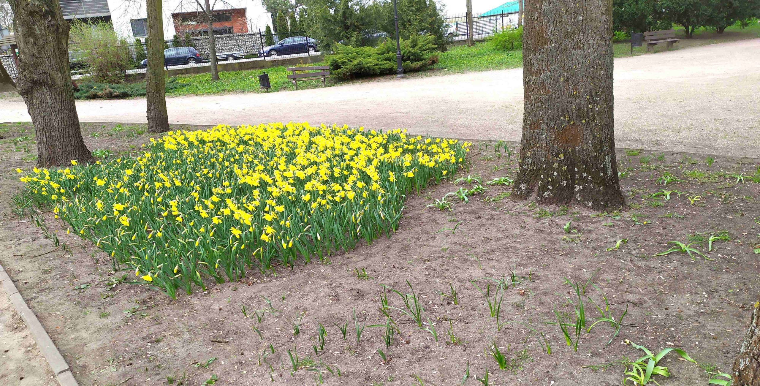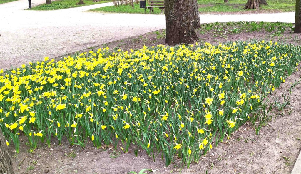 Zachwyt wzbudzają żonkile, które pięknie rozwinęły się na jednej z rabatek.