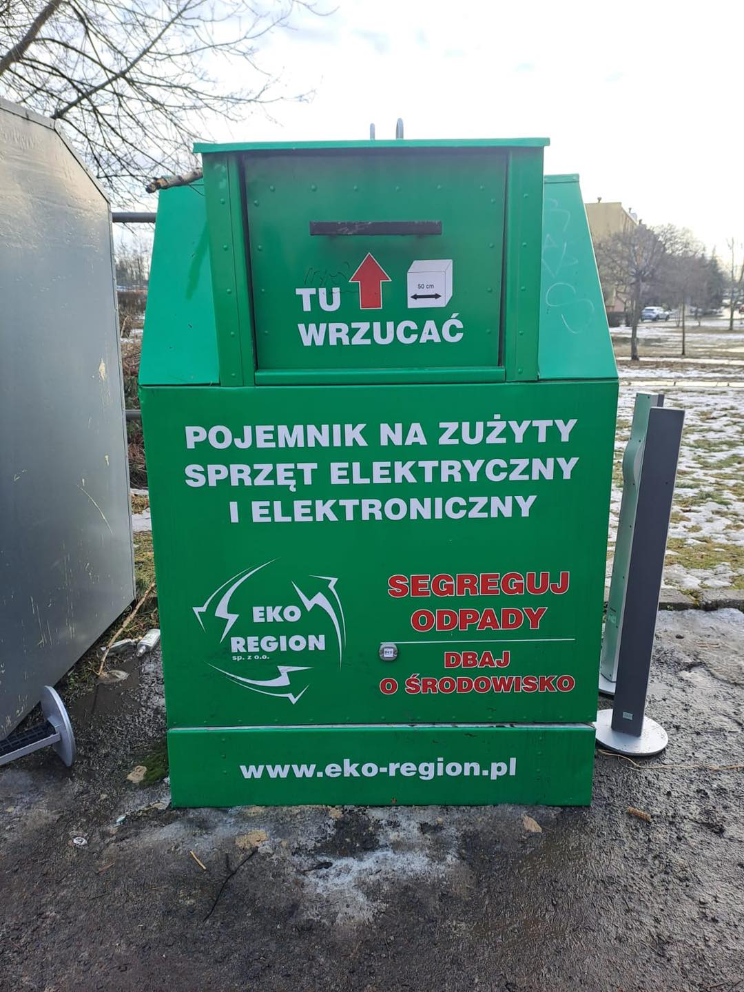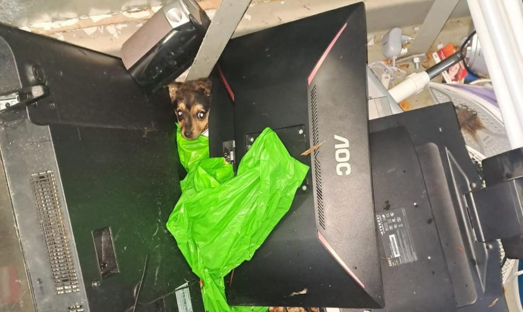 Bełchatowska straż miejska poinformowała o piesku w pojemniku na odpady elektroniczne.