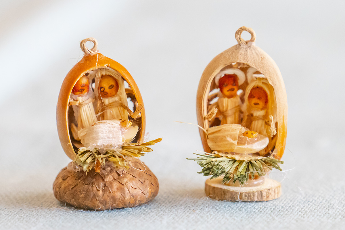 Maryja i Józef są z kukurydzy oraz sznurka, żłóbek jest z połówki fasoli, a główka narodzonego Jezusa to ziarenko prosa. A to wszystko w łupince orzecha, a nawet w pestce wiśni. Miniaturowe szopki bożonarodzeniowe, zachwycające detalami i kunsztem wykonania, to dzieło Mariusza Bogusławskiego, twórcy ludowego z Żarnowicy Małej (pow. piotrkowski).