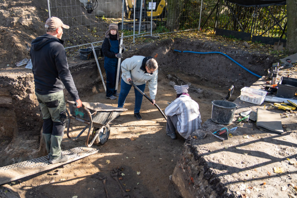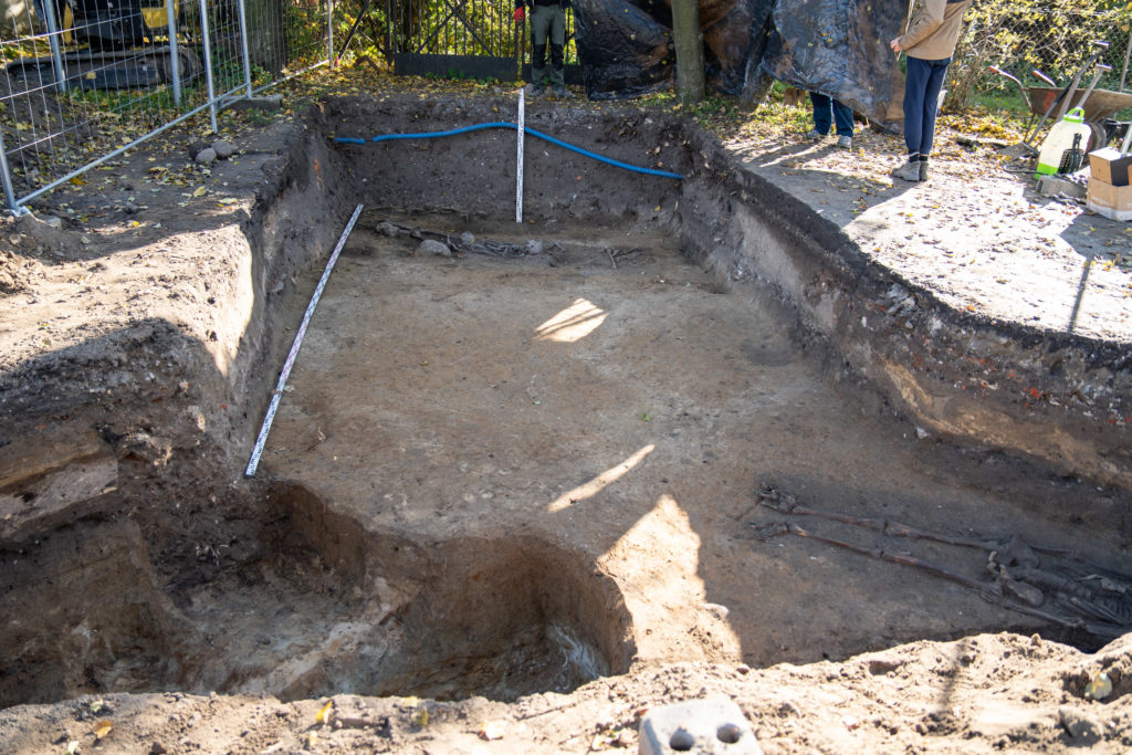 – Ich funkcja na tym etapie badań nie jest jeszcze jasno określona, ale podejrzewamy, że były to wkopy związane z poborem gliny lub doły, w których lasowano wapno. Ich głębokość dochodziła do dwóch metrów poniżej dzisiejszego poziomu terenu. Odkrywaliśmy w nich fragmenty nowożytnej ceramiki, fragmenty szkła, kafli, a także kości zwierzęce. Wystąpiły w nich również liczne szczątki ludzkie bez układu anatomicznego, pochodzące zapewne ze zniszczonych, starszych pochówków – opowiada Waldemar Stasiak.