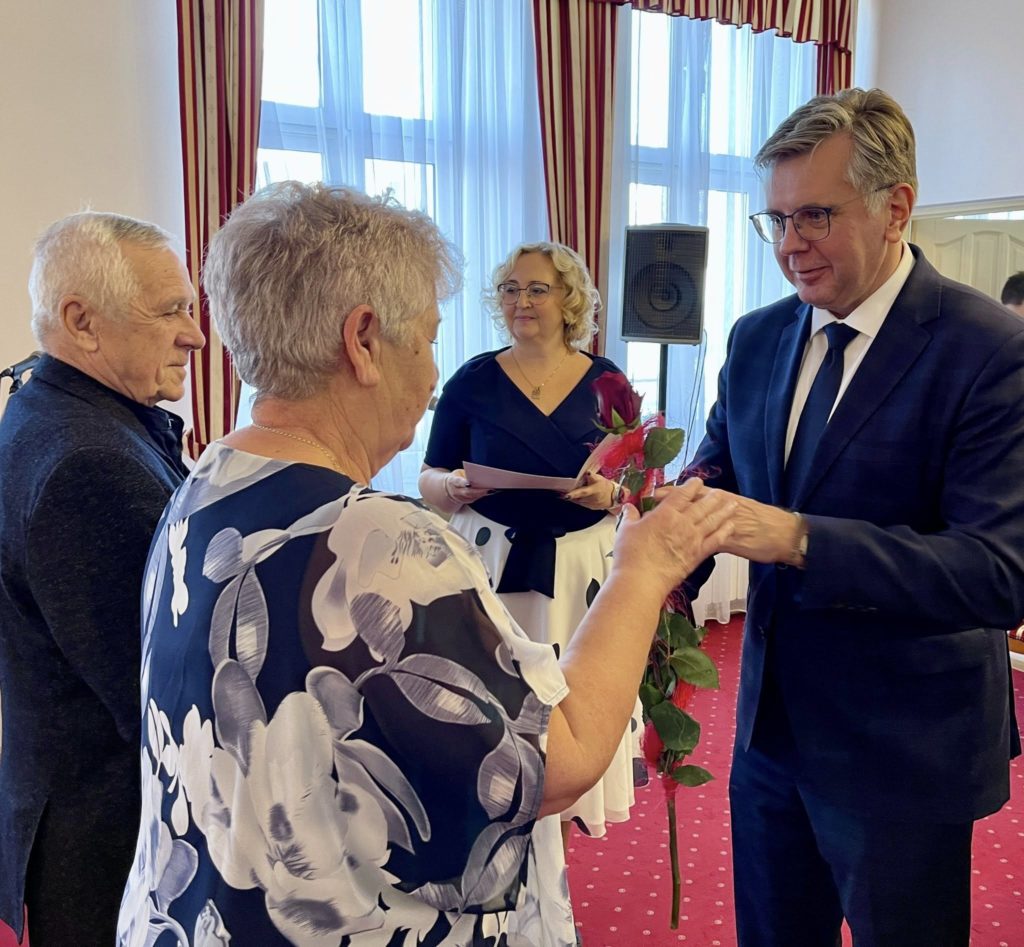 Jubilaci otrzymali również dyplomy okolicznościowe, kwiaty i upominki. Burmistrz Jacek Socha złożył wszystkim parom gratulacje oraz życzył kolejnych lat spędzonych w zdrowiu, harmonii i wzajemnym szacunku.