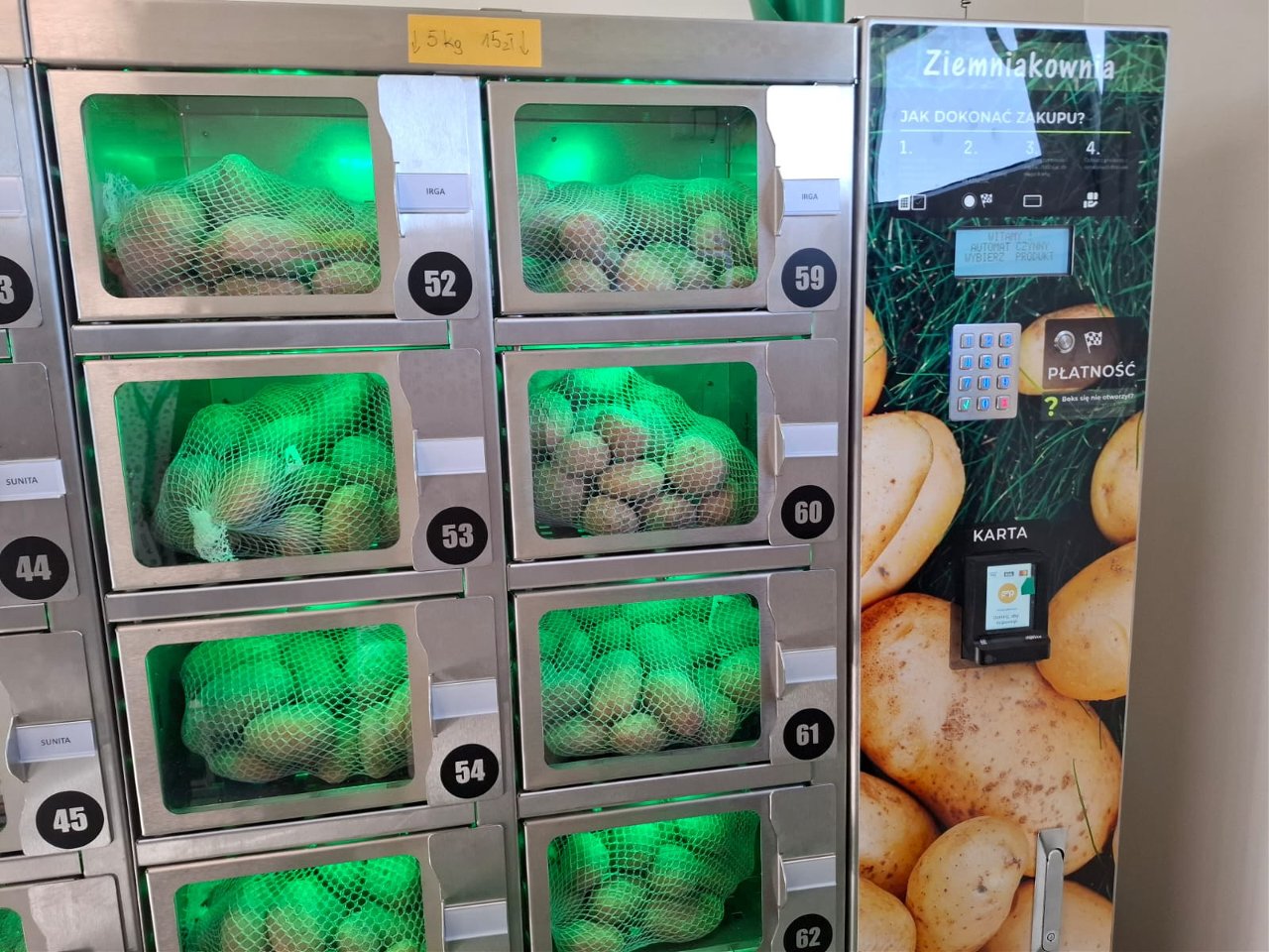 W Poddębicach pojawił się ziemniakomat, czyli automat, w którym można kupić świeże ziemniaki prosto od rolnika. To wygodne rozwiązanie dla mieszkańców i ciekawy przykład rozwoju lokalnego rolnictwa.