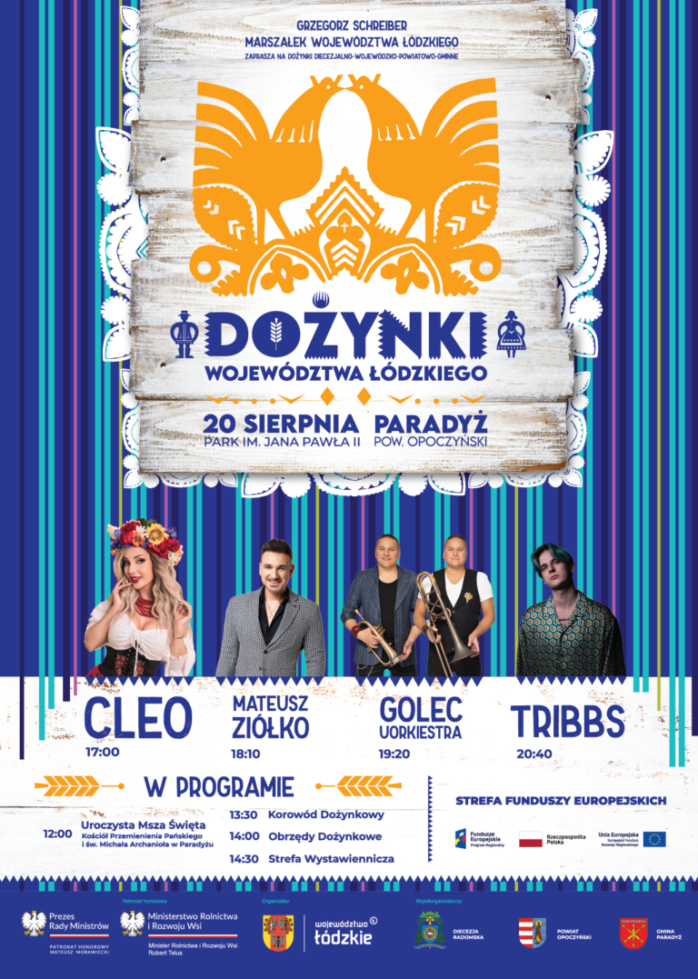 Ktoś powie: dożynki to tradycja, obrzędy, kultura ludowa. I to prawda. Ale dożynki, to przede wszystkim święto. A jak święto, to zabawa. I na taką z pewnością można liczyć na Dożynkach Województwa Łódzkiego, które są już 20 sierpnia w Paradyżu w powiecie opoczyńskim.