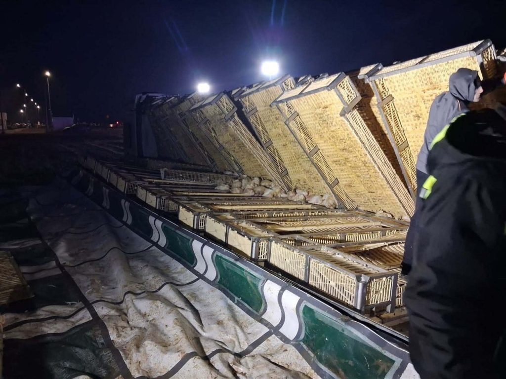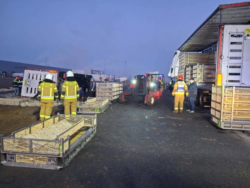 Na miejsce przyjechali strażacy, którzy rozcięli dach naczepy, żeby dostać się do skrzynek z kurczakami. W akcji uczestniczyli też pracownicy specjalistycznej firmy, którzy dokonali ich selekcji. Te kurczaki, które żyły, zostały przełożone do innego tira.