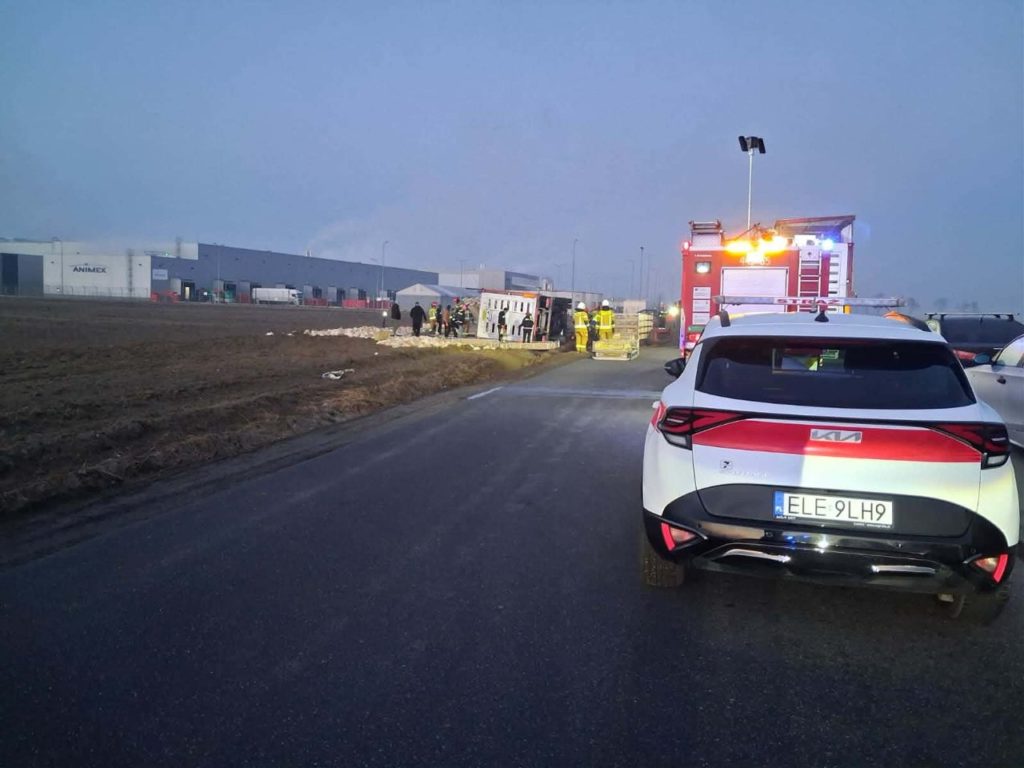 Tir z kurczakami przewrócił się pod Łęczycą!