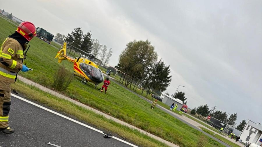 W Kaszewach Dwornych pod Kutnem zderzyły się na skrzyżowaniu dróg dwie ciężarówki. Ranny został 64-letni kierowca jednej z ciężarówek. Na miejscu lądował śmigłowiec LPR, który przetransportował poszkodowanego do szpitala.